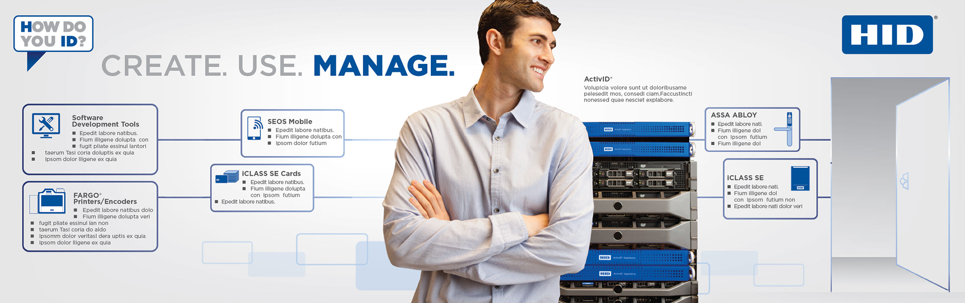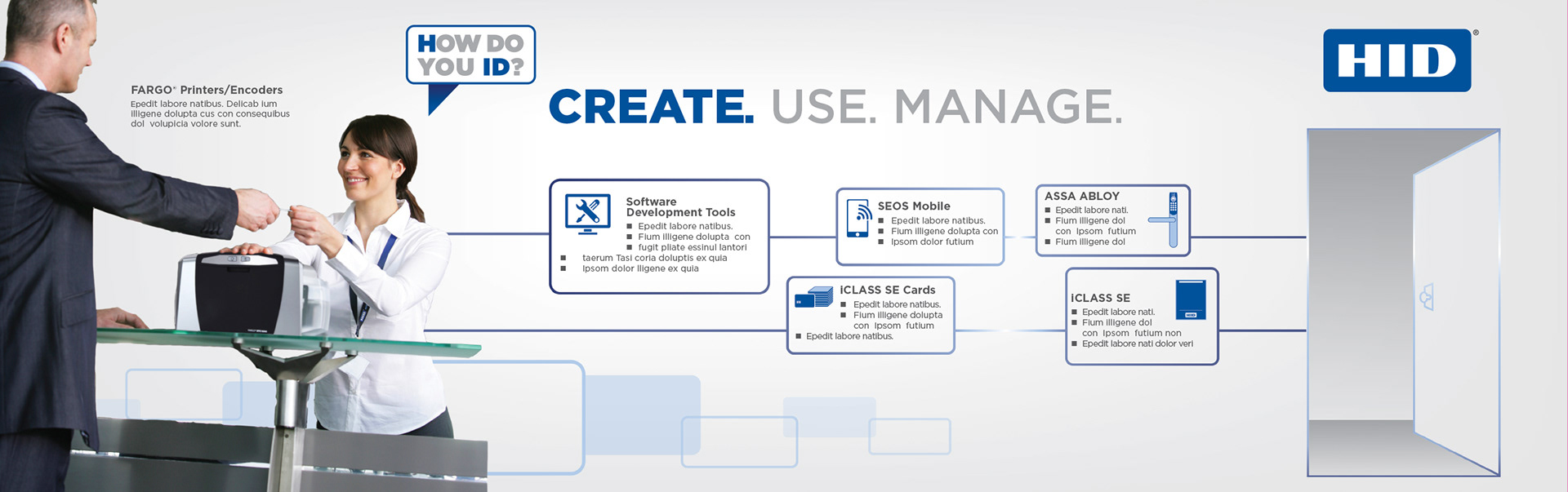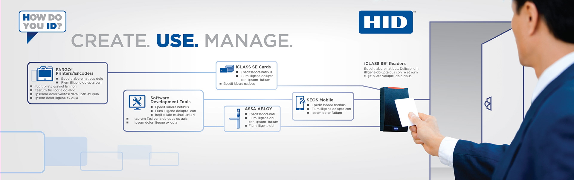 Tradeshow graphics that highlight HID Global's vertical solution's using HID products.